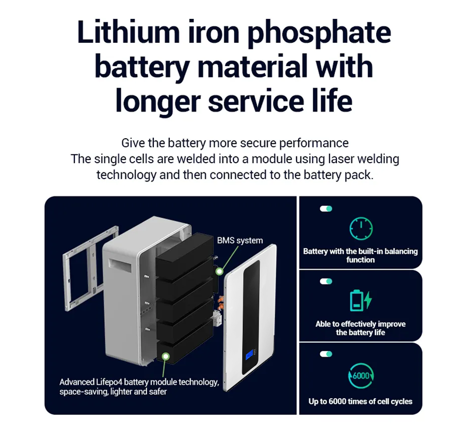 100Ah 51.2V 5KWH LiFePO4 Power Wall Battery Mounted Lithium Battery For Solar System