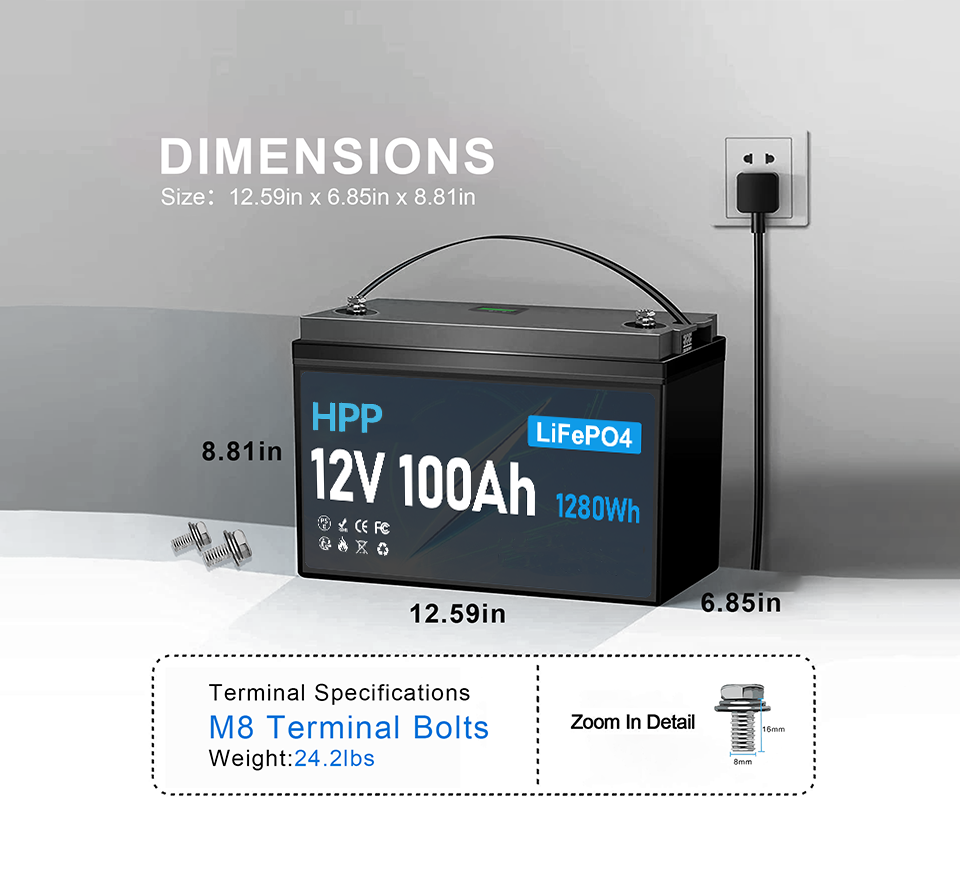 HPP 12V lithium battery has the outstanding features of large capacity per unit weight, high discharge power, fast charging, long cycle life, and high stability under high temperature and high heat environment.