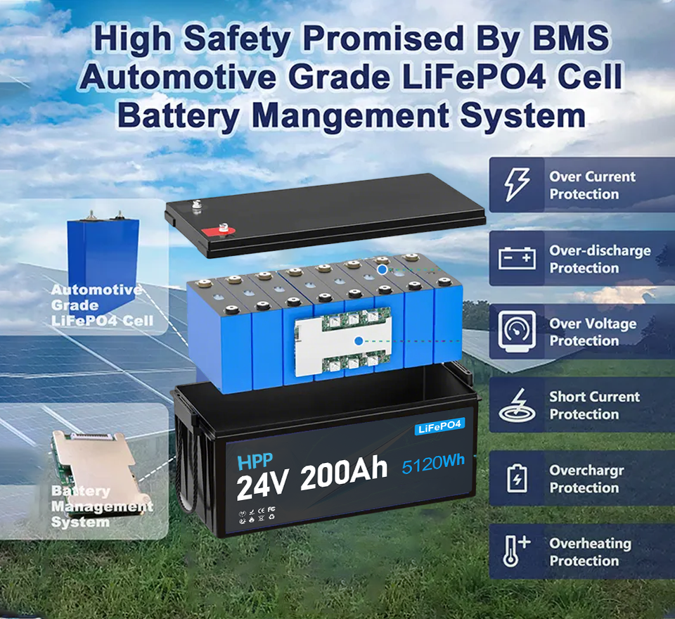 The 25.6V 200Ah battery uses Grade A (EV-grade) LiFePO4 cells, making it a premium replacement for AGM and gel lead-acid batteries. It delivers outstanding performance across various applications, including backup power, power systems, and communication tools. Additionally, it is highly suitable for RVs, golf carts, boats, and solar systems.