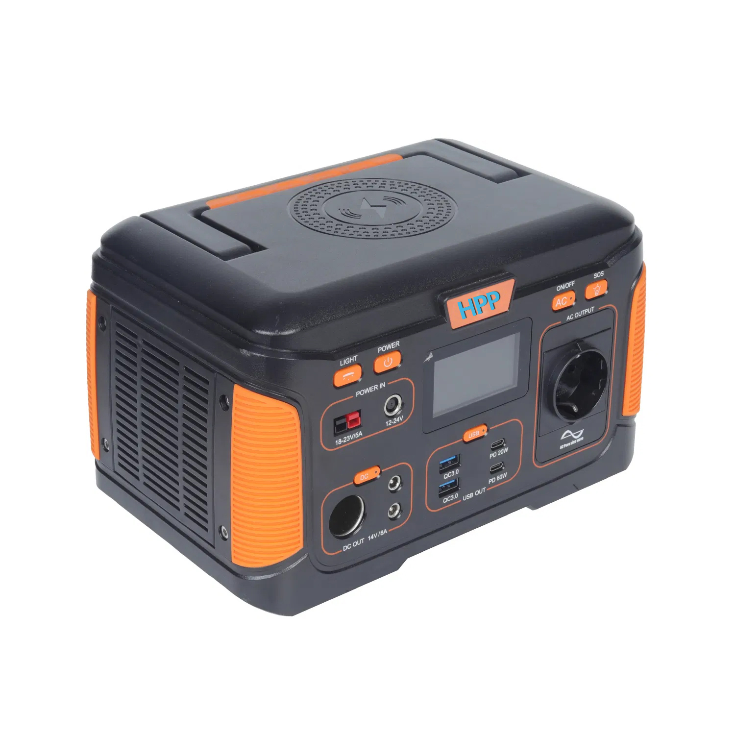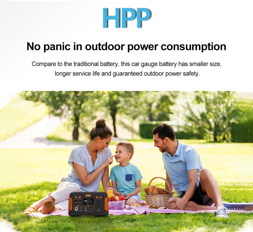 HPP batteries 500W 650W 1000W out door portable power station solar generator power supply.The 500W portable power station battery pack with ablity to supply 300W of pure sine wave AC power via the onboard AC output. Additional, the 500W is able to support to USB quick charging via onboard 2*USB PD port and 2*USB AC port. Overall storage capacity is 519.48Wh of energy.