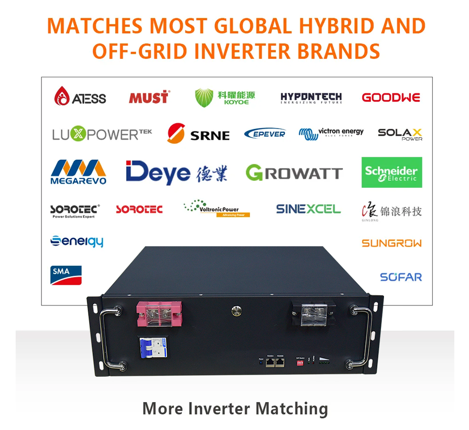 Wide Compatibility:Perfectly compatible with multiple inverters and energy systems, supporting hybrid, off-grid, and grid-connected configurations.Compatible with mainstream inverter brands, simplifying system setup and operation.